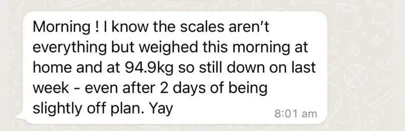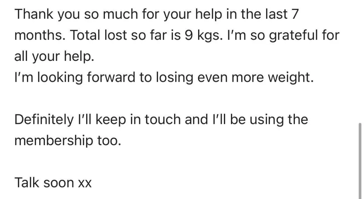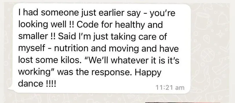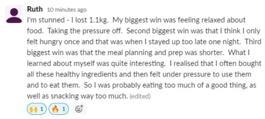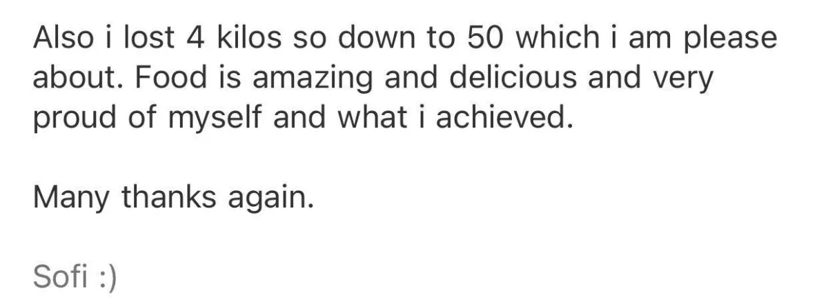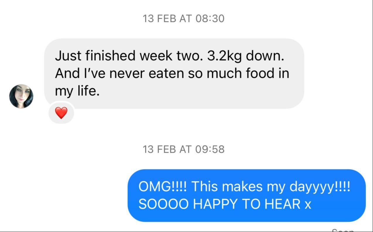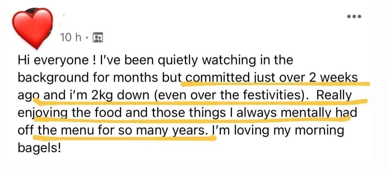 "I lost 6 kgs in 12 weeks, with no exercise, and still able to eat with friends and family without feeling like I was missing out.