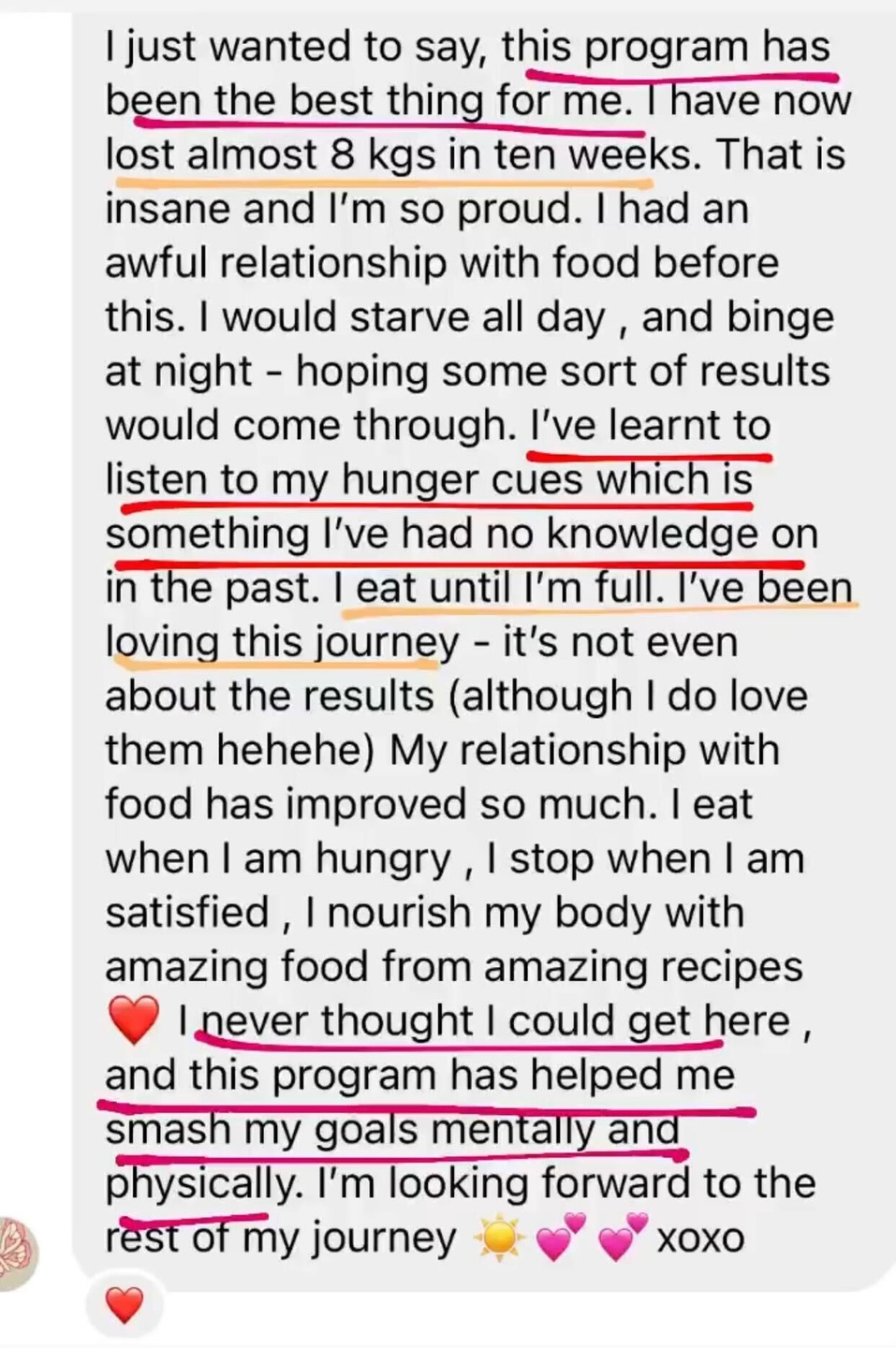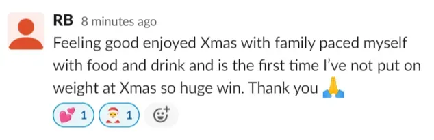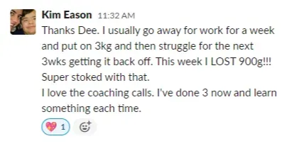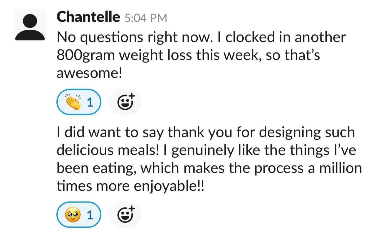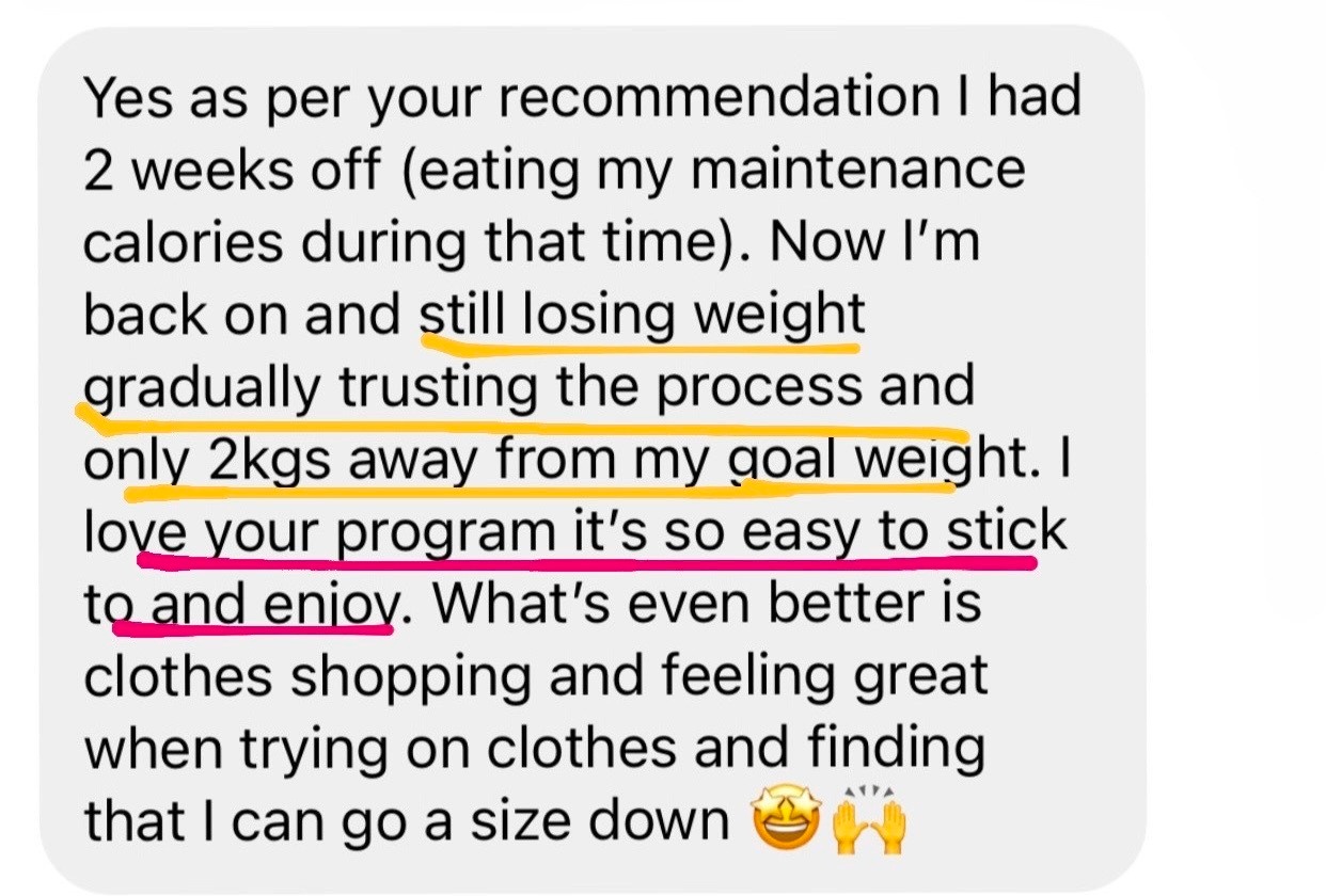 "I lost 6 kgs in 12 weeks, with no exercise, and still able to eat with friends and family without feeling like I was missing out.