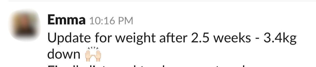 Emma, a busy manager leading a team of 50, dropped 3.4kgs in 2 weeks