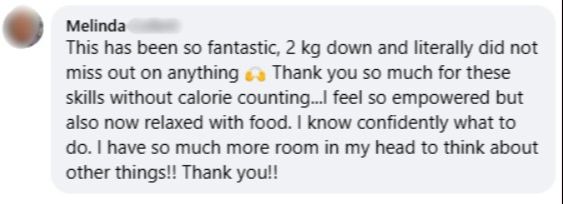 "Eating without calorie counting really works. Still can't believe I lost 2.8kgs in my first week"