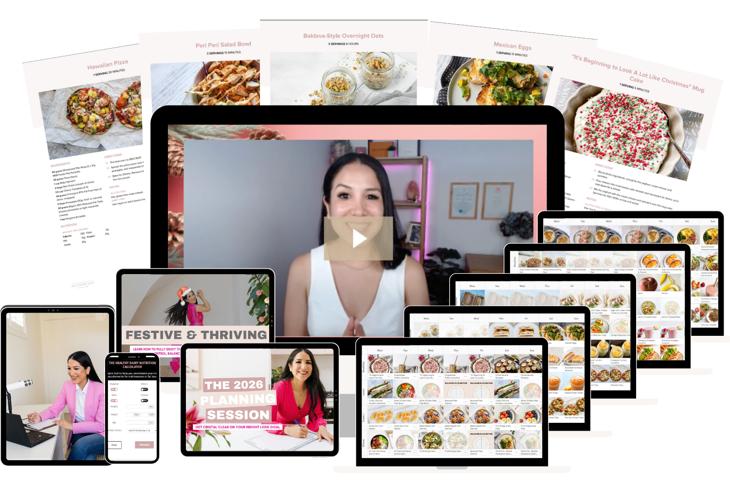 You'll get access to the replay of one of my most-loved client masterclasses, created specifically for the festive season. Inside, we map out the entire holiday period, plan for social events, and walk through proven strategies and resources to help you stay on track — without missing out.